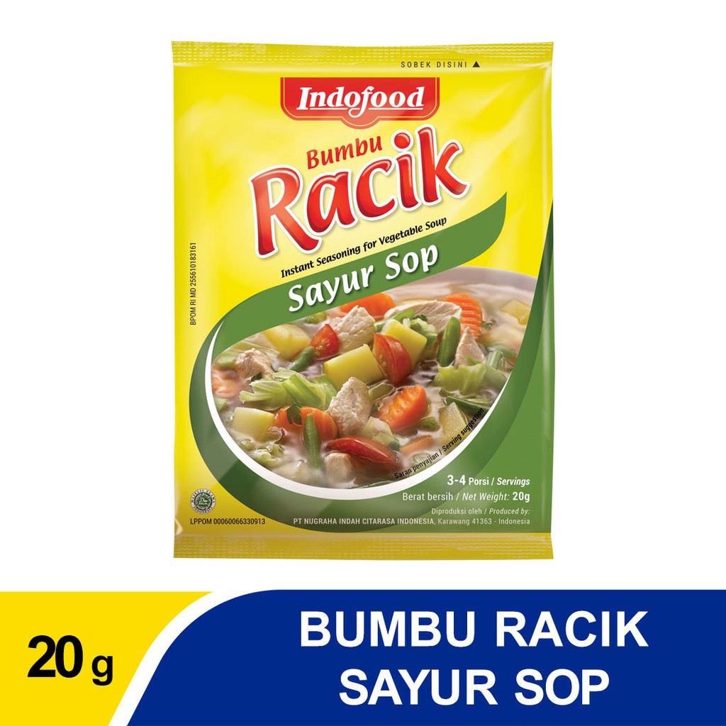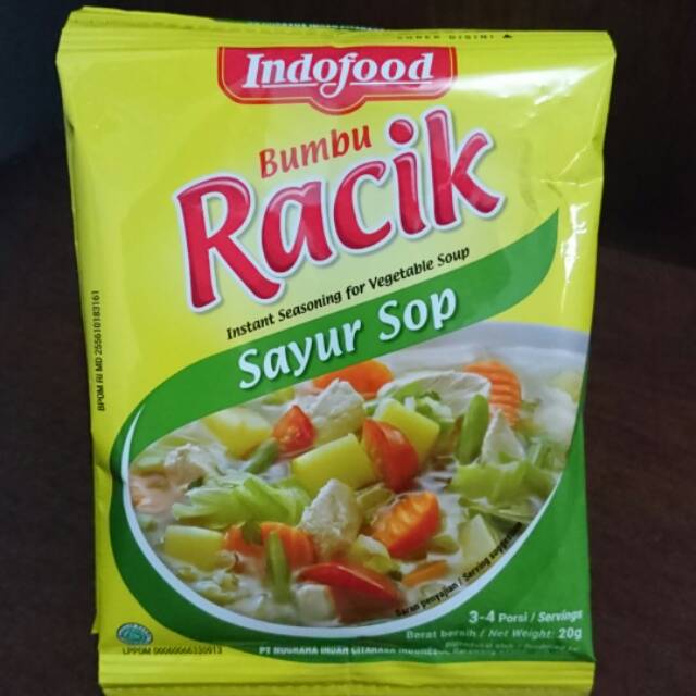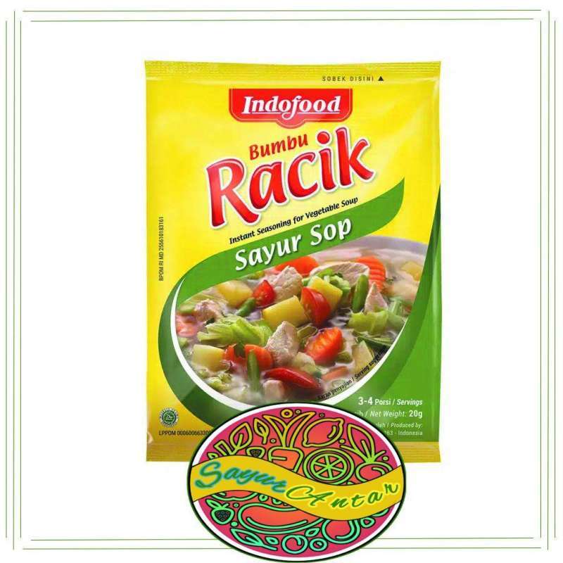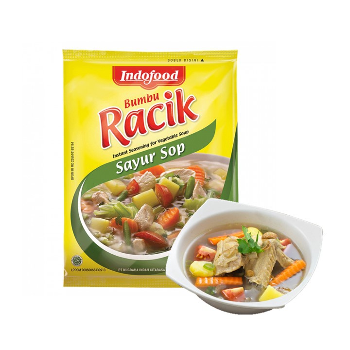 Indofood Bumbu Racik Sayur Sop 20g. 0800 mengikuti antrian dan sistem pengantaran Kami merupakan supplier utama dari banyak restaurant terkemuka di Indonesia. Bumbu sayur sop sederhana dan simple sehingga sayur sop merupakan sayur ringan dan menyehatkan.